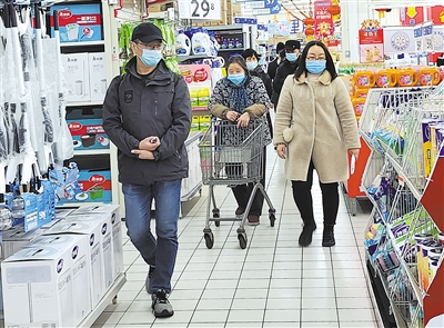 超市内,市民佩戴口罩购物。