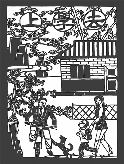 剪纸作品《上学去》