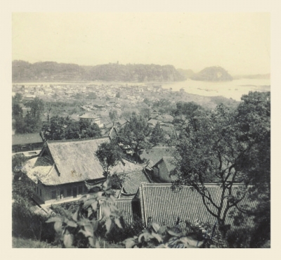 难能可贵的是,除了合影,武大人还拍摄了一系列风光照。如今,虽然画面已然斑驳,但黑白的相纸还是还原出了70年前的乐山。紧紧依偎着老霄顶的国立武汉大学,远可观三江长流一泻千里,近可得文庙百年文气,越过层层叠叠的屋顶,小城乐山的外貌一览无余;停泊在渡口的船帆林立,有摆渡者、过渡人,也有身着旗袍貌似远望风景的女子;一叶小舟孤立,似在守候身后远远的灵宝塔,禅意浓浓……