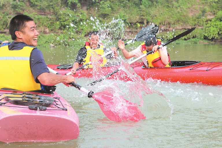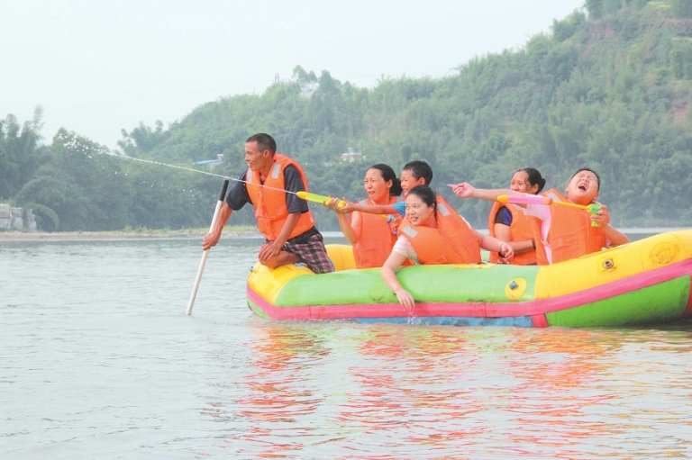 在沙滩休闲、水上活动区,可以沐浴河风,或走进浅水天然浴场,去划竹筏、去漂流、去戏水、去划皮划艇、“打水仗”,感受畅快淋漓的快乐。尤其在参与水上活动,浪花与心花共舞,歌声与笑声齐飞,让人感受到清凉一夏。