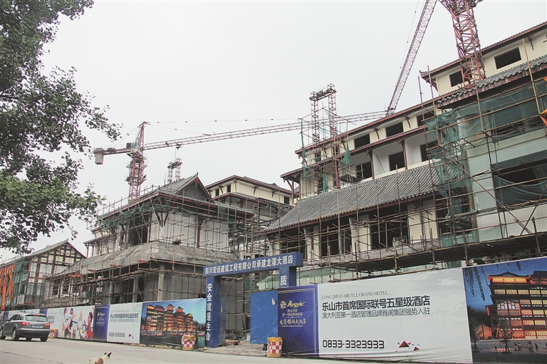 据了解,五通桥区龙濯雅阁大酒店总投资2.5亿元,系五通桥区首家五星级酒店、乐山市首家国际联号五星级酒店。酒店占地面积约8108.93平方米,建筑面积2.5万平米,在设计、建筑风格等方面充分融入五通桥文化元素,让酒店既有现代元素,又彰显五通桥文化特色。