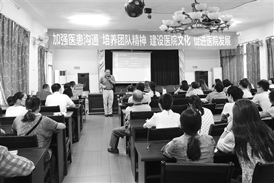 培训讲座期间,廖晓灵用诙谐幽默的语言,深入浅出的方式,向参与培训的医护人员阐述医患沟通的重要性。并从有效减少医疗纠纷、医院团队精神与文化建设、有效沟通、医院的核心竞争力等多个方面进行了培训。