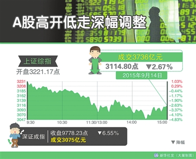 上证综指以3221.17点小幅高开,早盘上摸3229.48点后开始震荡下行,午后跌破3100点并下探3049.23点,跌幅一度高达逾4%。此后在银行板块的拉升下沪指开始震荡回升,尾盘站稳3100点,报3114.80点,跌85.43点,跌幅为2.67%。