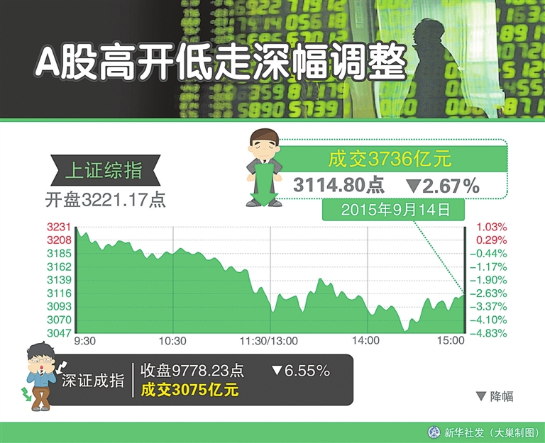 深证成指未能守住万点整数位,报9778.23点,跌685.46点,跌幅高达6.55%。