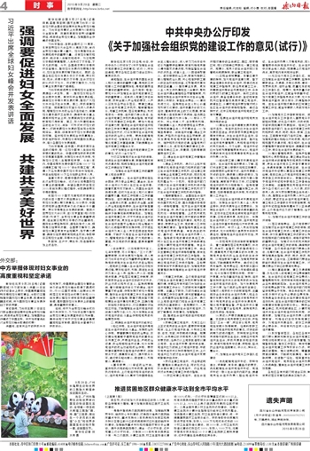 强调要促进妇女全面发展 共建共享美好世界
