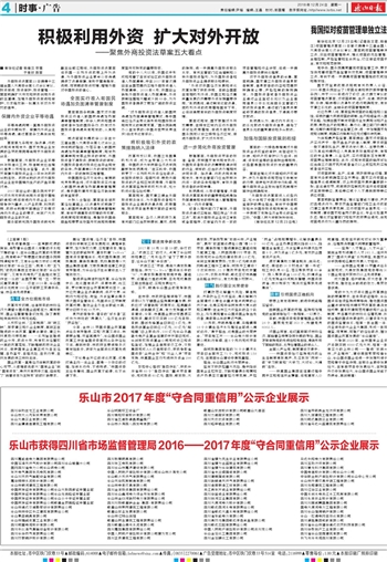 乐山市获得四川省市场监督管理局2016——2017年度“守合同重信用”公示企业展示