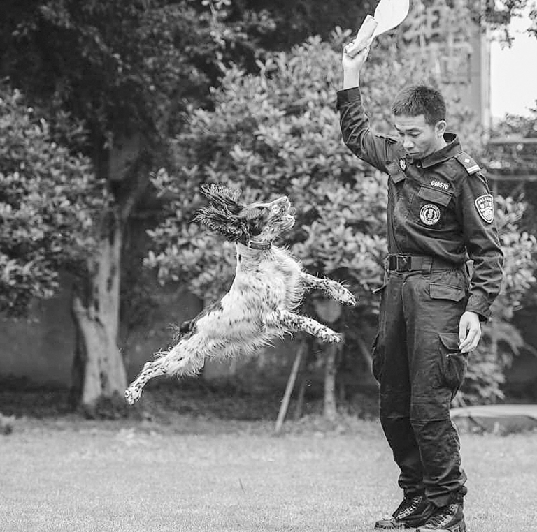 记者在犬舍看见了活泼好动的小宾,满身卷毛的它甩着耳朵,围绕杨中义蹦蹦跳跳。在杨中义的眼里,小宾更大的优点是坚韧与敬业。