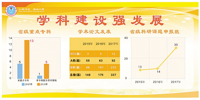 成功晋级“三甲”、新住院综合大楼投用、病区功能分离设置、信息化大数据技术运用、技术紧跟世界医学前沿、管理日趋向国际化看齐……乐山市人民医院用事实和数据不断刷新着乐山医疗卫生事业发展史上的记录,用一个接一个的殊荣书写着医院跨越式发展的里程碑!