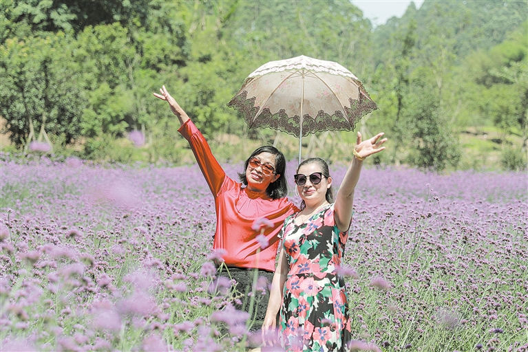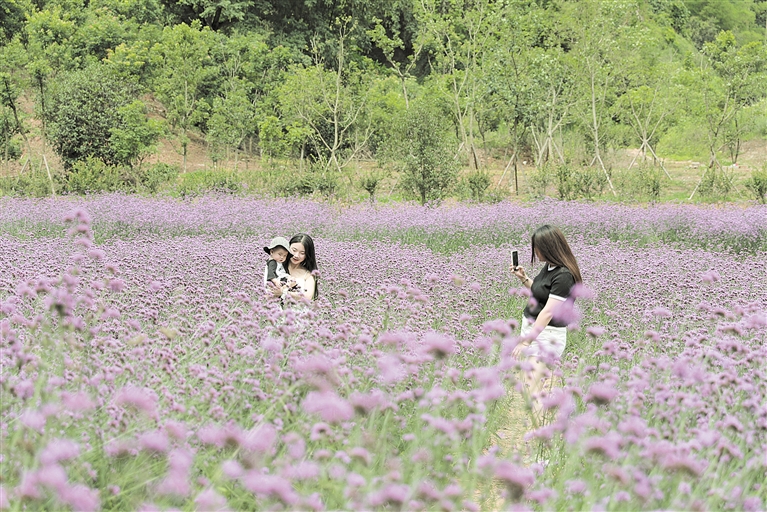 夏日炎炎,嘉州绿心公园内马鞭草迎来盛花期,一朵朵紫色的小花开在青山碧野间,竞相绽放的小花层层叠叠,形成壮观的紫色花海,吸引众多市民前来观赏,感受这片紫色的浪漫。