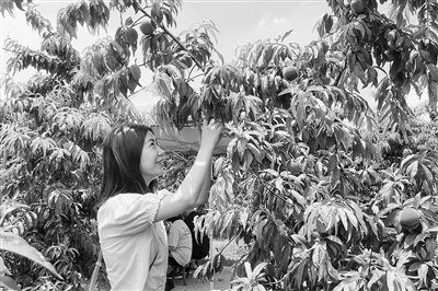 虽然正值中午,果园里依旧有不少前来体验采摘乐趣的游客,或提篮行走在果林之中,或看准心仪的果实就出手,或将摘下的果实去皮尝味。记者了解到,从5月下旬开始,该合作社包括春雪、春美两个品种在内的桃树已经陆续进入了采摘期。桃子采摘期结束后,果园里的凤凰李、蜂糖李等又已进入成熟采摘期。