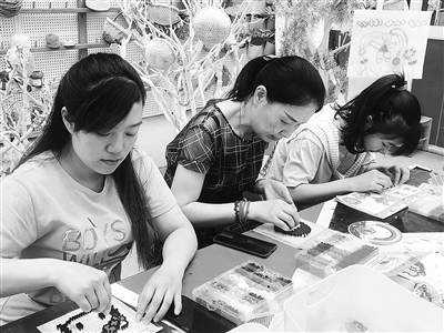 为丰富教师业余生活,近日,市机关幼儿园美术工作坊开展“神奇拼豆豆”活动。教师们将各种颜色的豆子拼放成自己想要的图案或形状,再通过小熨斗,制作出各种各样美丽的饰品,创意十足。图为活动现场。余婷 摄