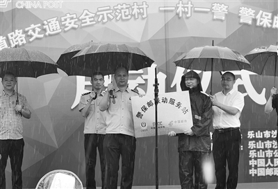 三峨山村“警保邮联动”一站式服务站项目,由沙湾镇政府、市公安局沙湾区分局交通警察大队、中国人民财产保险股份有限公司乐山市沙湾支公司、中国邮政集团有限公司乐山市沙湾区分公司共同协办,是持续深化公安交通管理改革的一项便民举措,也是乐山交警部门积极推动“警保邮”联动协作合作的一次创新。