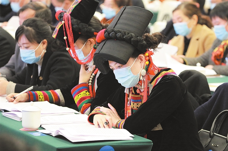 昨(7)日,市七届人大六次会议开幕,市人大代表认真聆听报告。记者 吴桐 摄