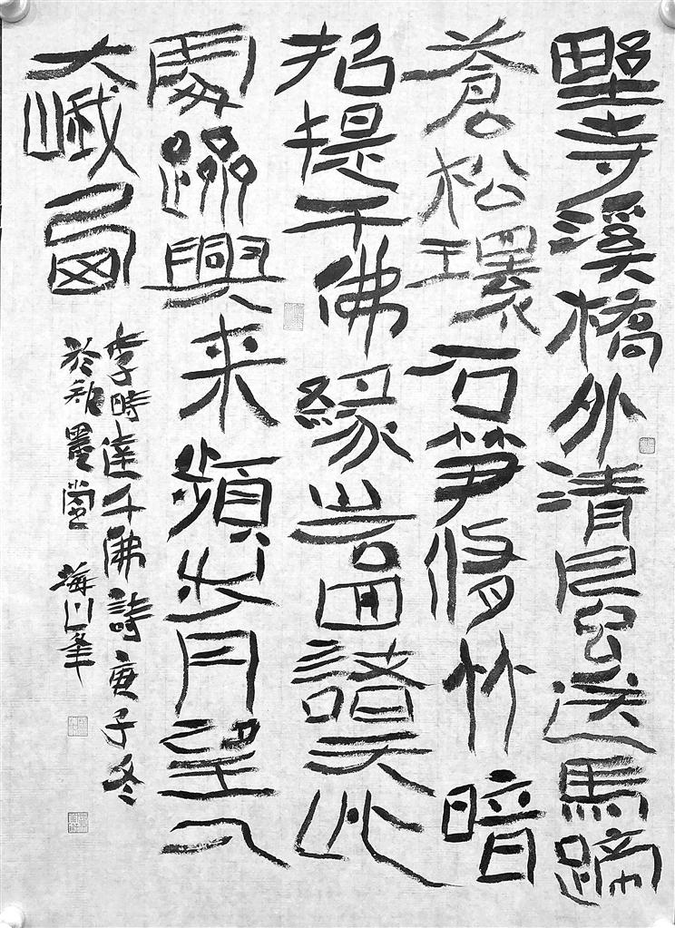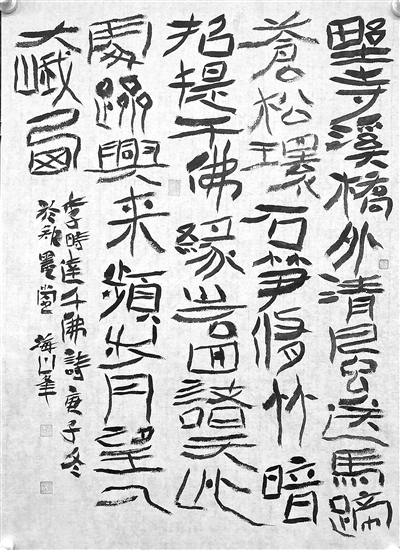 戚海峰:我一直都觉得自己是一个在别人的“打击”中成长起来的人。1997年,我初出茅庐就进入书法全国展,但是1999年第一次参加由四川省书法家协会组织的专业培训时,老师却告诉我,我之前的风格“不得行”,要改练秦汉书法才能有长足发展。2005年,我参加另一场培训进修时,老师又说我基础功不扎实,还想一蹴而就搞创新,让我踏踏实实沉下心来练。2015年我正式进入何应辉先生工作室研修书法,我都还在不断被否定,老师叮嘱我要再临古帖,抓基本功。
