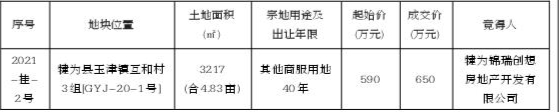 我中心于2021年2月9日举行的国有建设用地使用权挂牌出让活动,成交结果如下: