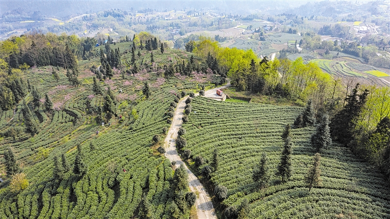 随着气温逐渐回升,沙湾区葫芦镇四峨山进入春茶采摘期。日前,记者在位于四峨山的乐山御园茶叶有限责任公司茶叶基地看到,错落有致的一片片茶树顺着山势绵延起伏,采茶工人点缀其间采摘新芽,一派生机勃勃的景象。记者 龚启文 摄