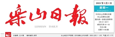 2021年3月1日 星期一农历辛丑年正月十八 今日4版 总第11180期 乐山城区天气预报: 白天到晚上多云间阴 风向:北风1-2级 气温:8℃-17℃