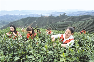 3月15日,随着气温的升高,浙江省杭州市富阳区富春街道拔山村的万亩茶园进入采摘旺季。为了解决茶农人手不足及销售渠道不畅等问题,富春街道的党团员志愿者组成春茶“帮帮团”,开展春季助农活动。志愿者们利用业余时间轮流上岗,帮助农户采摘茶叶并组成直播团助力销售茶叶。