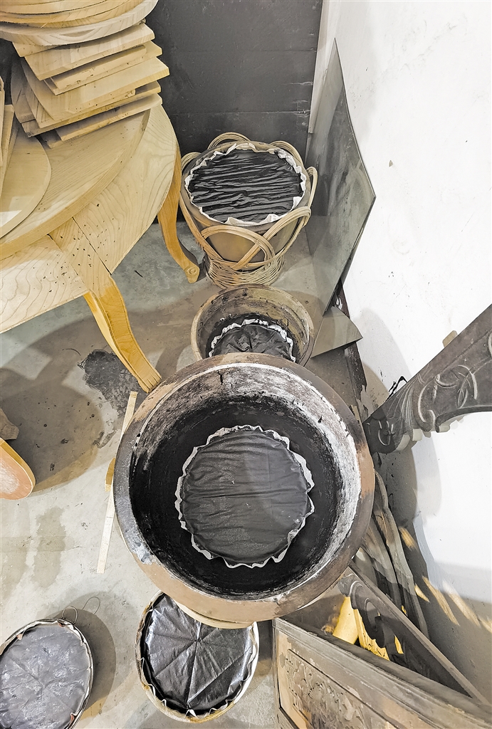 记者了解到,割取的漆液须经过过滤、搅拌、脱水等多道工序,才能制成精制生漆和熟漆,过程艰辛。而多数人在接触未干的生漆时都会有不同程度的过敏,需要蜕一层皮才会好转。此外,生漆的干燥,还需要一个适宜的荫干环境,“生漆可比人有脾气多了,太阳暴晒、气候寒冷都不易干燥,而只要一层漆未干就不能进行下一道工序。”精益求精的吕世林并未因为记者的到来展示生漆器物的制作,“你今天来的时间不巧,我们这一批八仙桌的刮灰是在一周前,现在还未干透,不能为你演示下一道工序。”