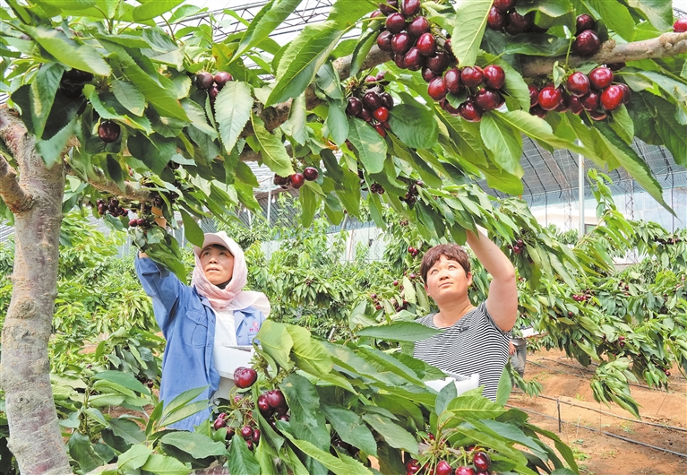 近日,河北省秦皇岛市海港区驻操营镇的设施樱桃陆续成熟,果农开始适时采摘上市。近年来,秦皇岛市海港区根据当地气候和土壤特点,通过“合作社+基地+农户”的方式,发展设施樱桃种植,带动农民增收致富,助力乡村振兴。