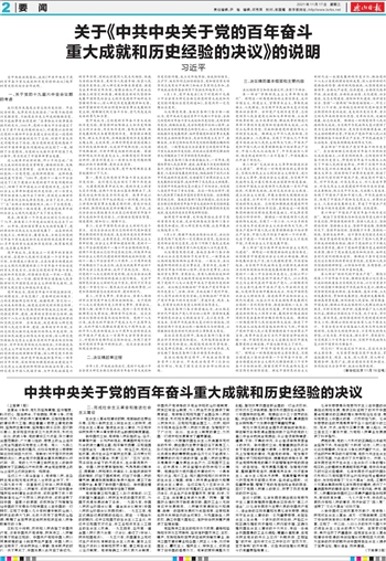 关于《中共中央关于党的百年奋斗重大成就和历史经验的决议》的说明
