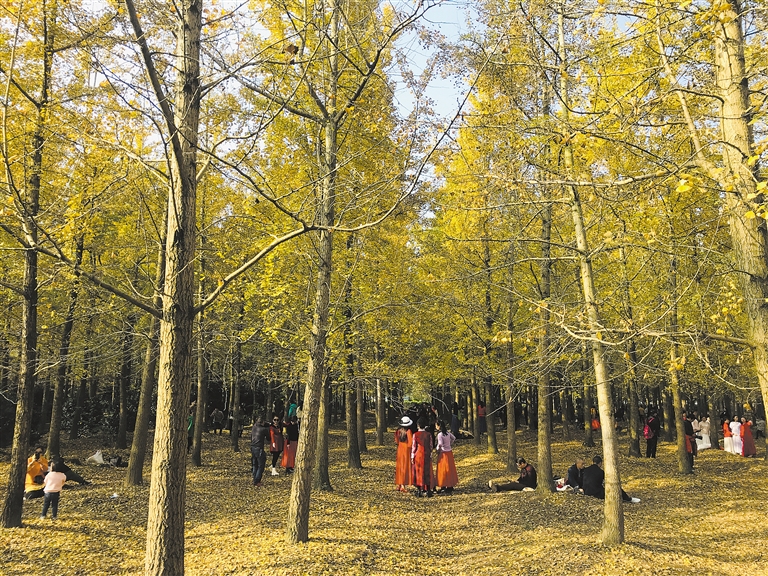 连日来,位于市中区平兴镇滑石村六组的200亩银杏林迎来最佳观赏期,一排排银杏树在冬日暖阳的照耀下仿佛披上了层层“金甲”,市民们不约而同前来“打卡”,欣赏银杏美景。
