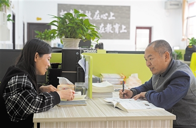 图为在长丰学校教师办公室,“夫妻老师”王景明(右)和邓君一起备课,探讨教学问题(11月18日摄)。