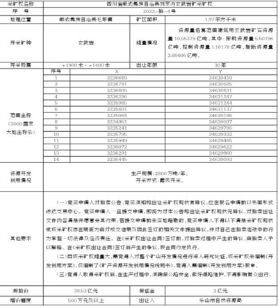 1.本次采矿权出让实行网上报名,竞买申请人须于公告之日起至2022年4月12日17:00前通过乐山市公共资源交易服务中心网站(http://lsggzy.com.cn)完成网上报名和缴纳保证金。