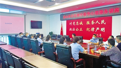 本报讯 (记者 戴余乐 文/图)中高考即将来临,为有效缓解学生及家长的考前心理压力,5月20日,市人民医院“健康直通车”应邀走进市公安局交警支队,为部分家中有中高考学生的民警家长进行中高考服务讲座。