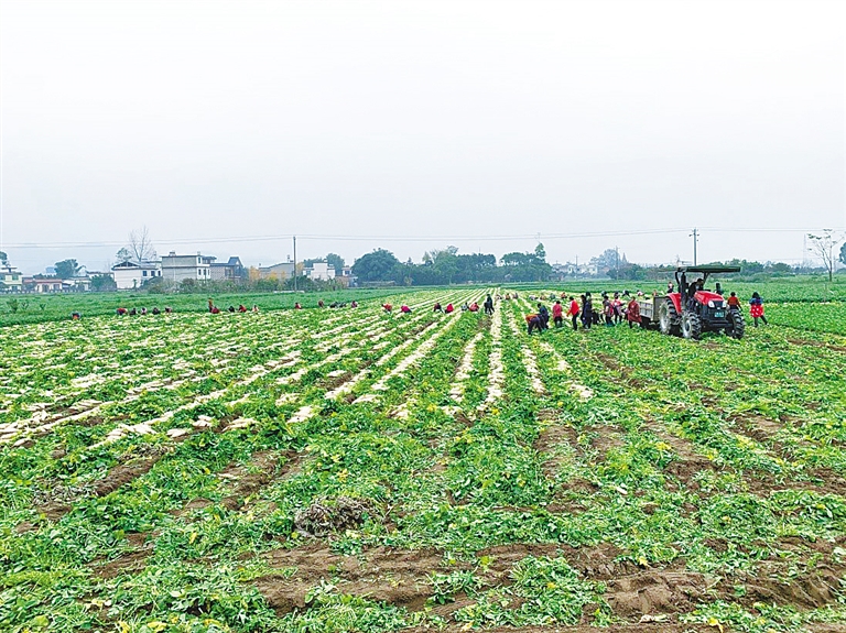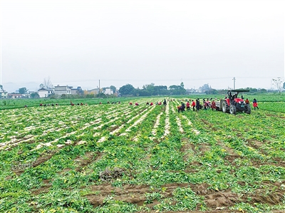 依托地理和土壤优势,魏坝村积极作为,引进重庆蔬菜种植大户、流转土地1000余亩种植萝卜,产生经济效益达500余万元,为村集体经济增收8万余元。