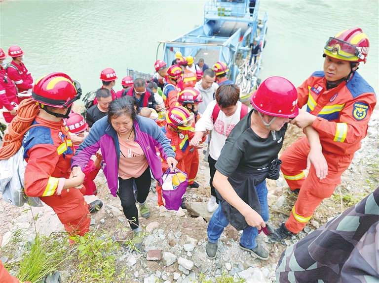 本报讯(张峻华 记者 罗曦 文/图)9月7日,根据四川省消防救援总队指令,乐山市消防救援支队增援泸定地震救援队出动17辆消防车、4艘冲锋舟、68名指战员,对灾区雅安市石棉县部分区域开展人员搜救和受灾群众疏散任务。截至7日19时许,救援队在王岗坪乡幸福村进行摸排,共计摸排341户,疏散107人。
