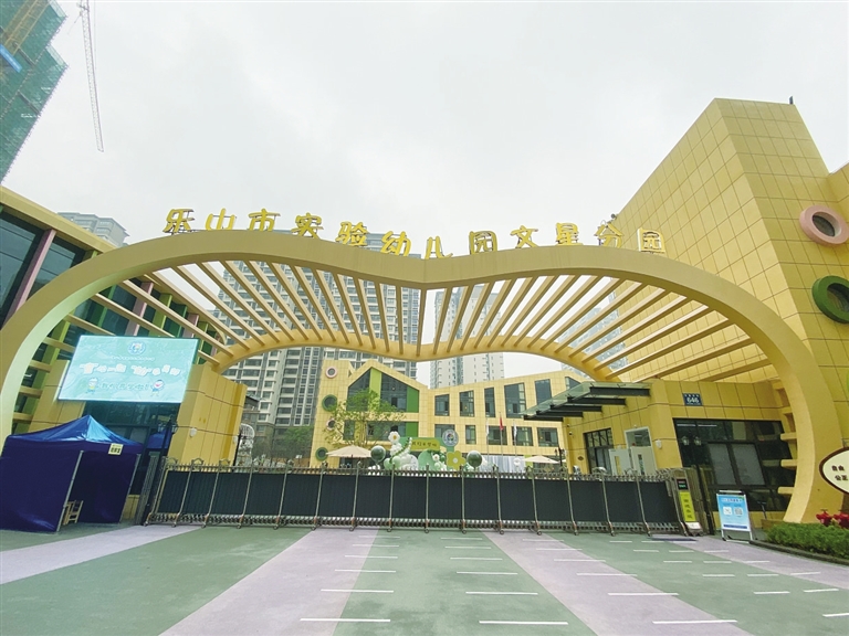 本报讯(记者 鲁倩文 文/图)10月25日,位于中心城区通江片区王河路与文星后街交汇处的乐山市实验幼儿园文星分园(以下简称“文星分园”)正式开园。据了解,作为乐山市学前教育的民生工程,该所公办幼儿园的投入使用,将有效解决通江片区600名适龄儿童的入学问题,缓解该片区幼儿入学压力,让优质的学前教育惠及更多家庭。