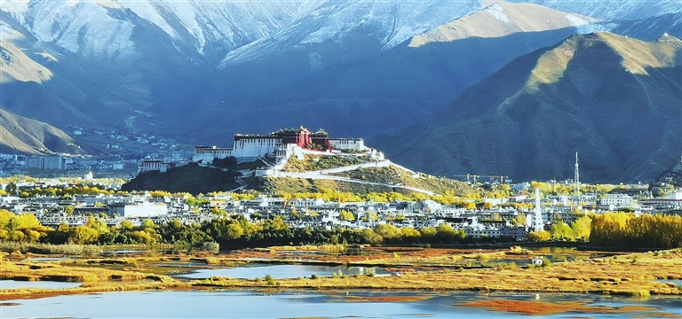 深秋已至,位于西藏拉萨的世界文化遗产布达拉宫在高原秋色的衬托下分外美丽。