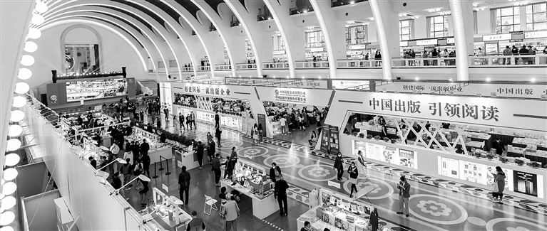 图为11月18日在上海展览中心拍摄的2022上海书展精品图书展览展销区。