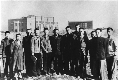 上图:1956年,江泽民同志(左七)在长春第一汽车制造厂同援建一汽的苏联专家等合影。