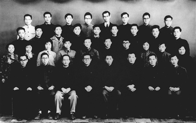 上图:1963年3月,江泽民同志(前排右五)在上海同小型三相异步电机全国统一系列设计领导小组成员合影。