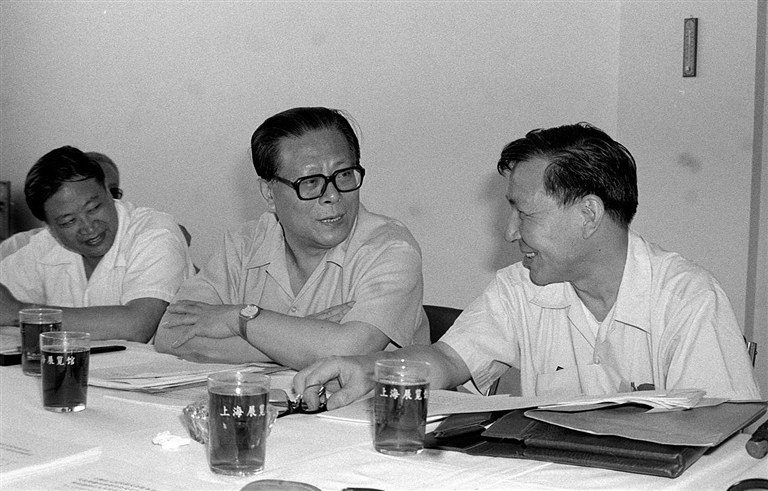 上图:1985年,江泽民同志在上海市八届人大四次会议上。