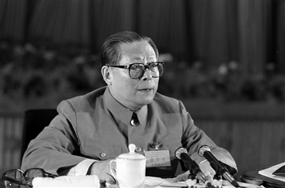上图:1989年6月23日至24日,中国共产党第十三届中央委员会第四次全体会议在北京召开。这是江泽民同志在会上讲话。