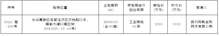 乐山市土地矿权交易中心于2023年1月6日举行的国有建设用地使用权挂牌出让活动,成交结果如下: